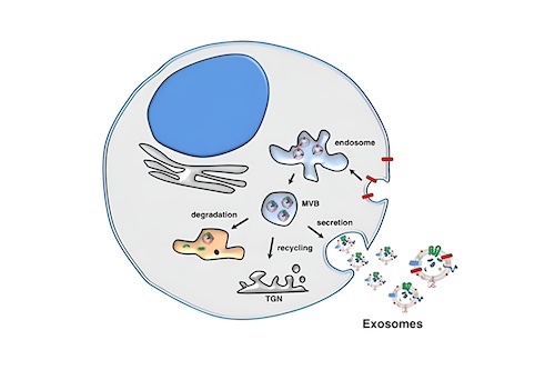 間充質干細胞外泌體是間充質干細胞分泌的具有完整膜結構的細胞外囊泡,直徑通常為30~150nm,內含多種蛋白質、脂類、核酸等。包括干細胞在內的許多不同類型的細胞都會釋放外泌體,它們參與多種疾病的復雜分子機制,如細胞間通訊、組織修復與再生、炎癥和免疫系統調節等。