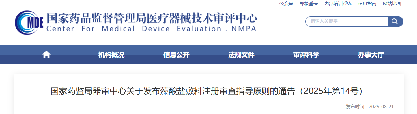 為進一步規范藻酸鹽敷料產品的管理,國家藥監局器審中心組織制定了《藻酸鹽敷料注冊審查指導原則》,現予發布。
