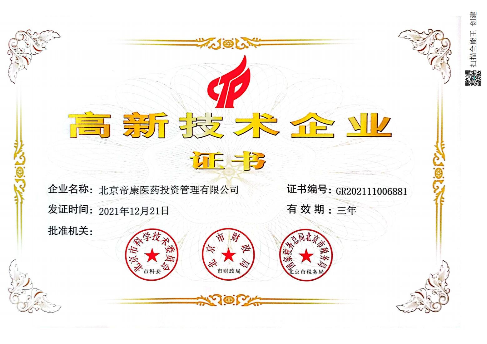 地址:北京市大興區生物醫藥產業基地天富街9號院6號樓(西側獨棟)北京帝康醫藥
